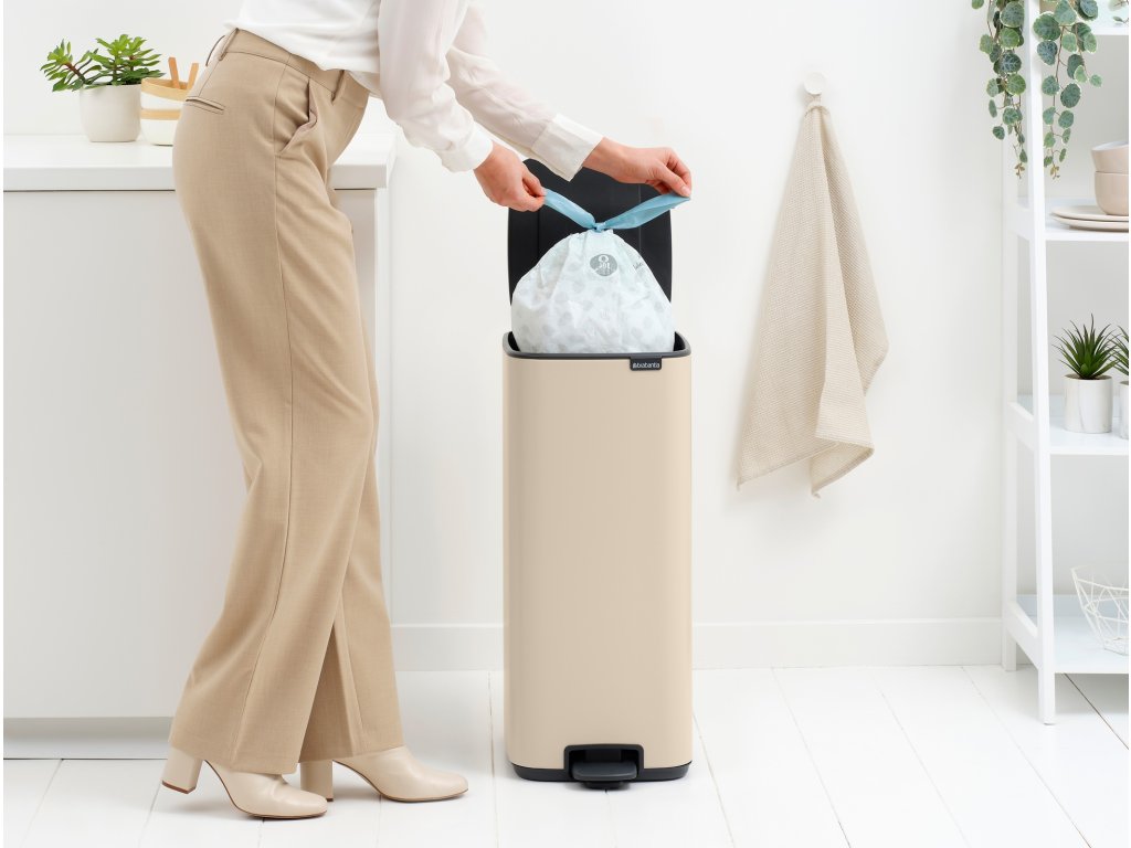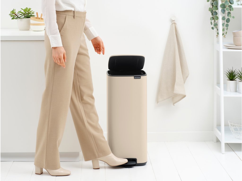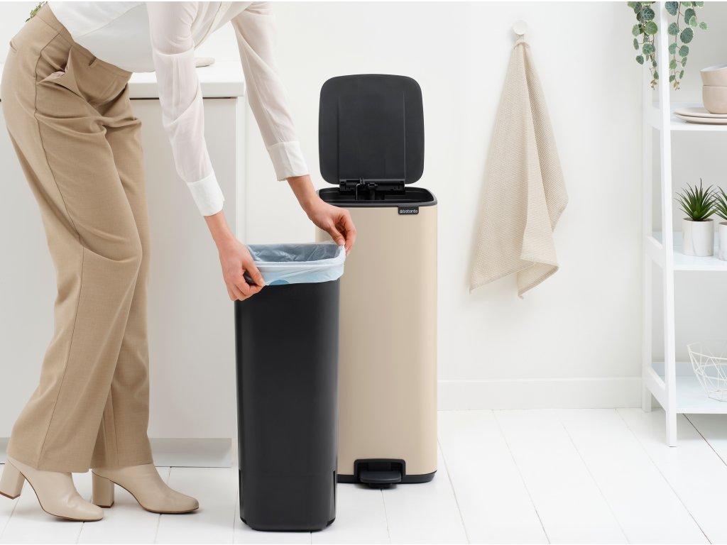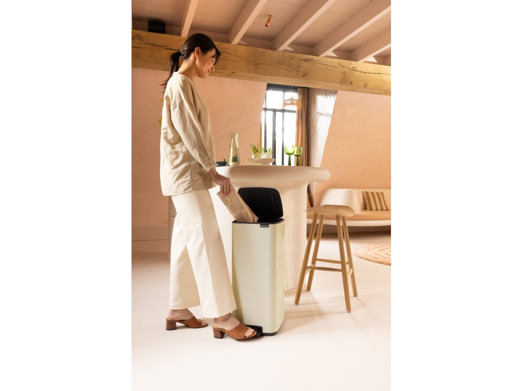 Chcete skvělý odpadkový koš s maximálním stylem? Tento štíhlý pedálový koš Brabantia Bo o objemu 30 litrů je krásný zvenku i zevnitř. Šetří místo, má hygienické ovládání pedálem a víko, které se po dokončení jemně zavírá – pro tuto štíhlou krásku není žádná objednávka příliš vysoká. Je čas na úklid? Vyjměte vnitřní kbelík a přenášejte koš za transportní rukojeť. K dispozici je dokonce i funkce ponechání otevřené polohy, která vám pomůže s úklidem. Tento vysoký a elegantní pomocník v domácnosti se také přizpůsobí zdi. Zvolte Bo!