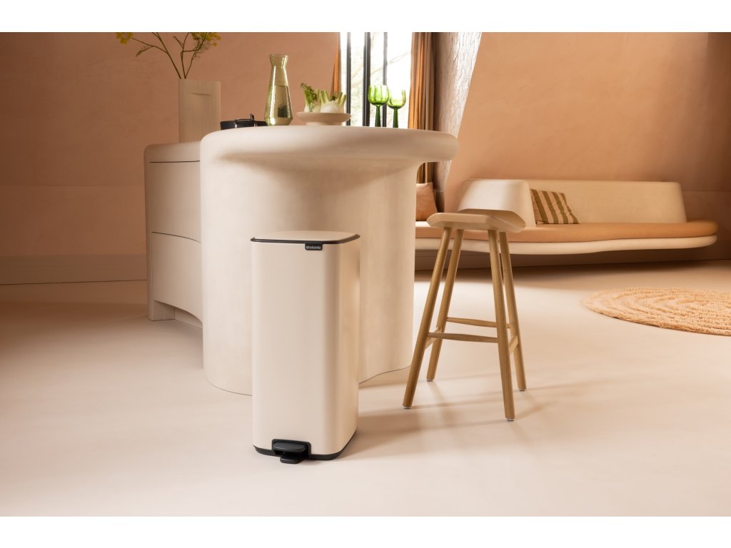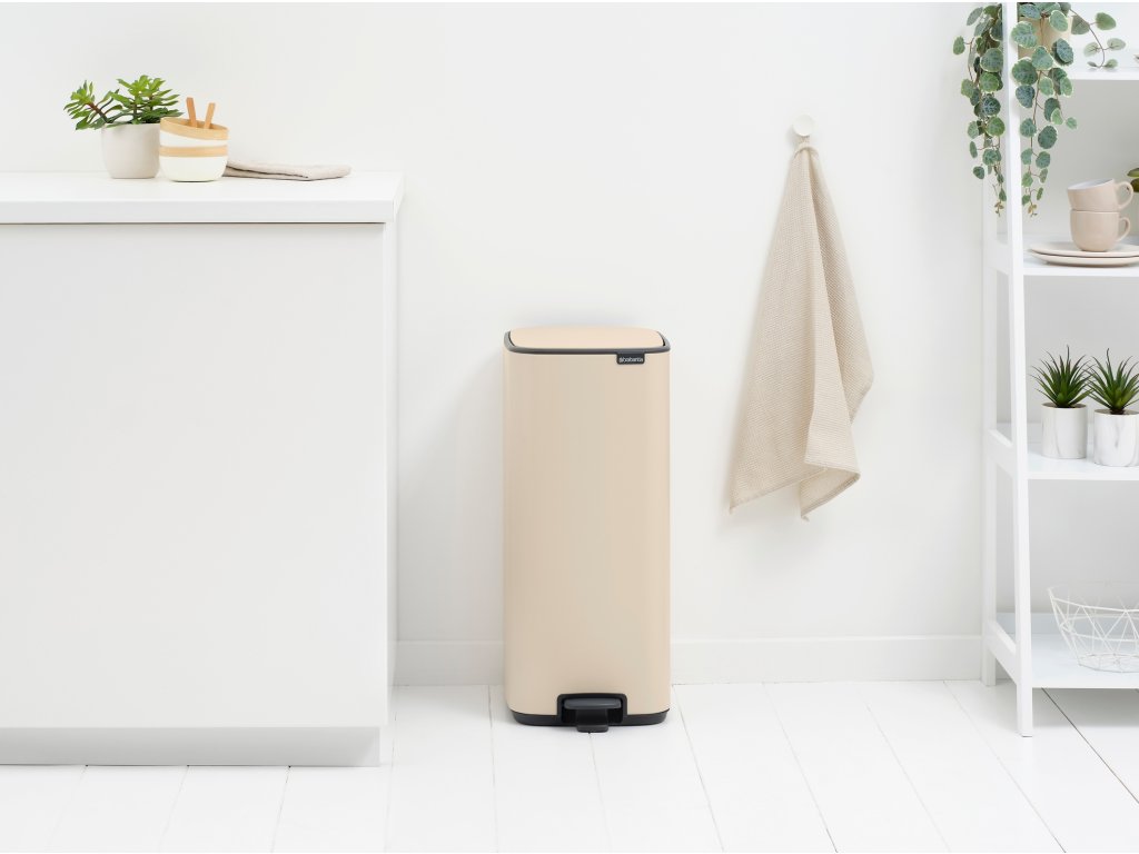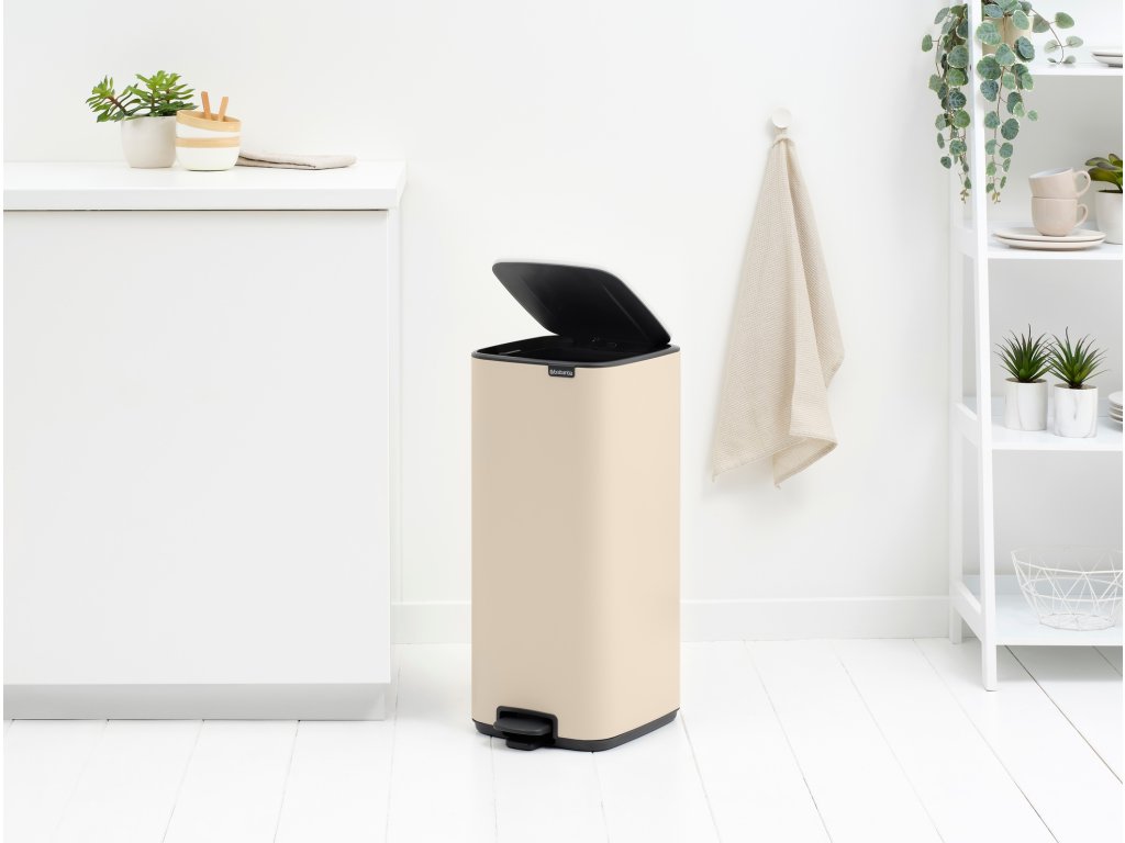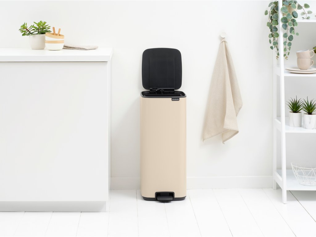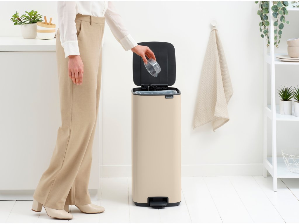 Chcete skvělý odpadkový koš s maximálním stylem? Tento štíhlý pedálový koš Brabantia Bo o objemu 30 litrů je krásný zvenku i zevnitř. Šetří místo, má hygienické ovládání pedálem a víko, které se po dokončení jemně zavírá – pro tuto štíhlou krásku není žádná objednávka příliš vysoká. Je čas na úklid? Vyjměte vnitřní kbelík a přenášejte koš za transportní rukojeť. K dispozici je dokonce i funkce ponechání otevřené polohy, která vám pomůže s úklidem. Tento vysoký a elegantní pomocník v domácnosti se také přizpůsobí zdi. Zvolte Bo!