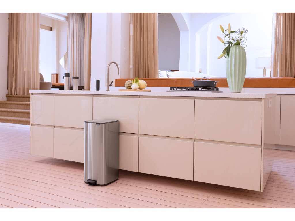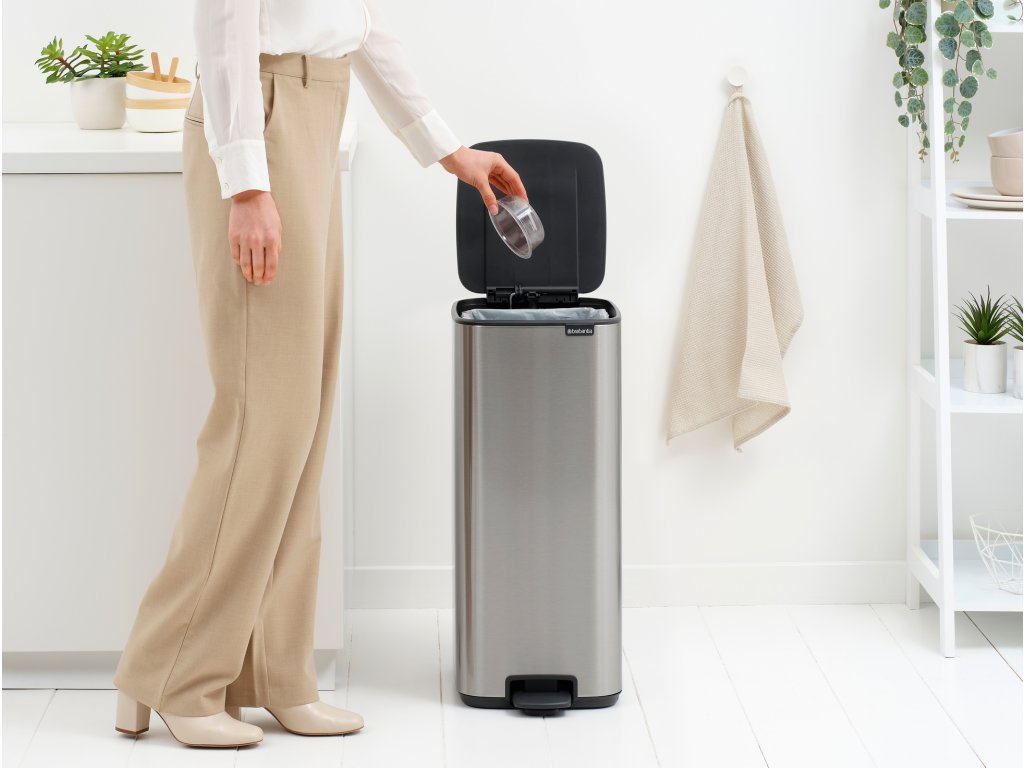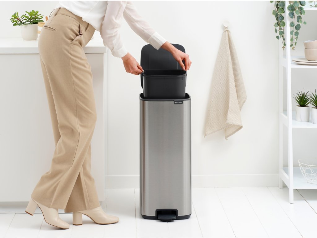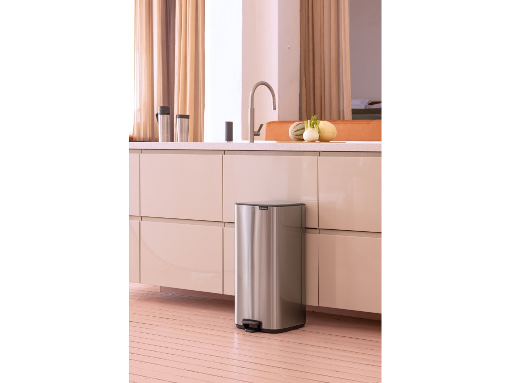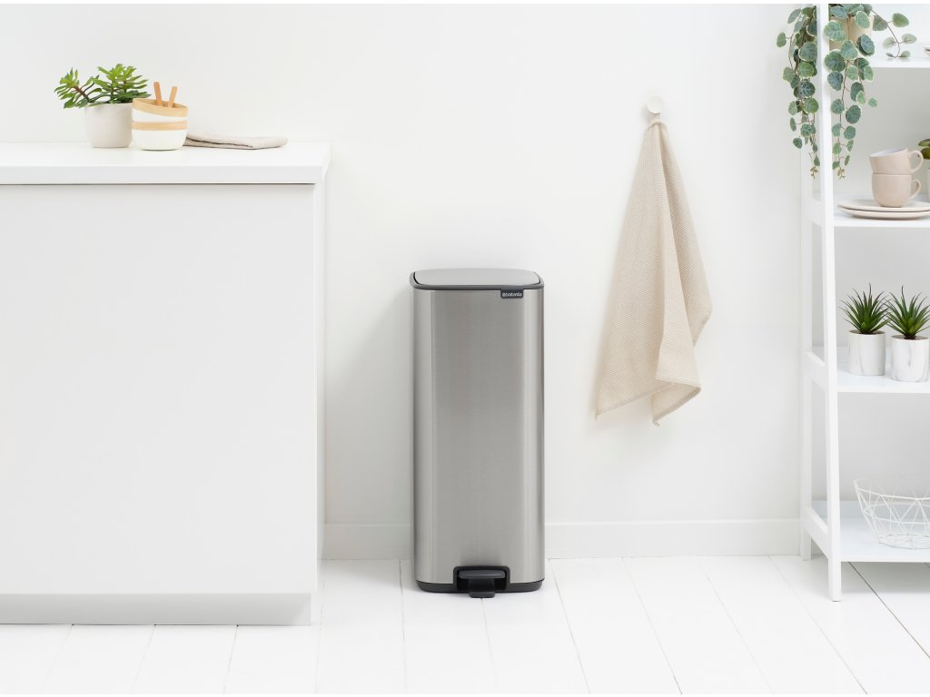 Chcete skvělý odpadkový koš s maximálním stylem? Tento štíhlý pedálový koš Brabantia Bo o objemu 30 litrů je krásný zvenku i zevnitř. Šetří místo, má hygienické ovládání pedálem a víko, které se po dokončení jemně zavírá – pro tuto štíhlou krásku není žádná objednávka příliš vysoká. Je čas na úklid? Vyjměte vnitřní kbelík a přenášejte koš za transportní rukojeť. K dispozici je dokonce i funkce ponechání otevřené polohy, která vám pomůže s úklidem. Tento vysoký a elegantní pomocník v domácnosti se také přizpůsobí zdi. Zvolte Bo!