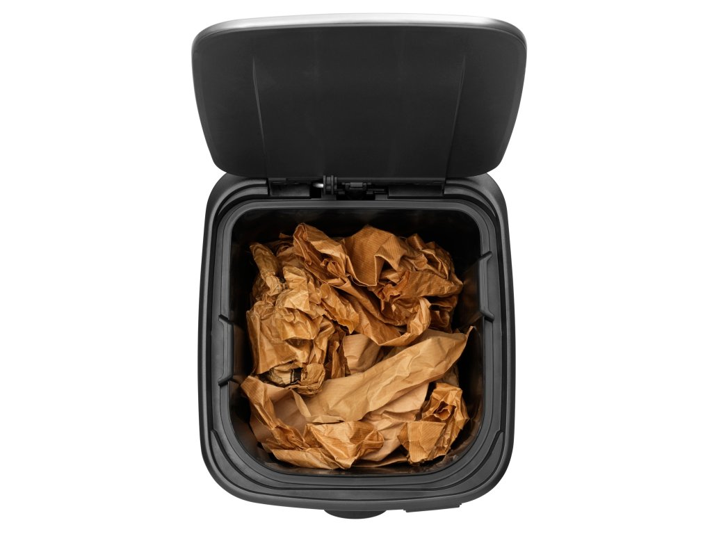 Ideální pro větší úkoly a výměnu pytlů na odpadky – poloha ponechání otevřené polohy.