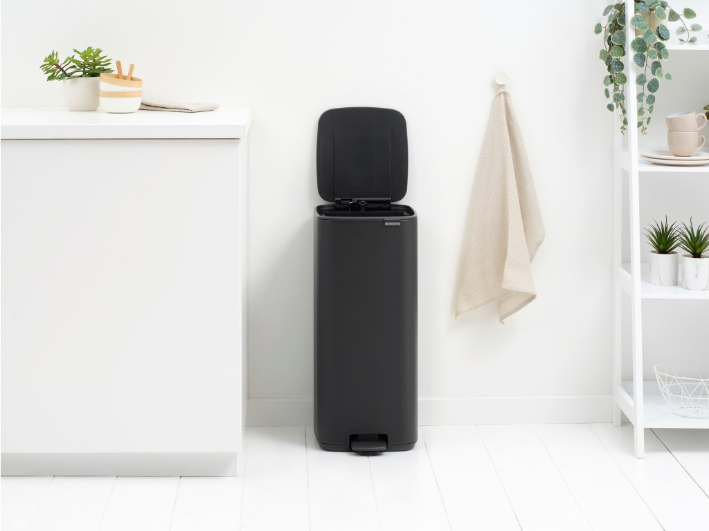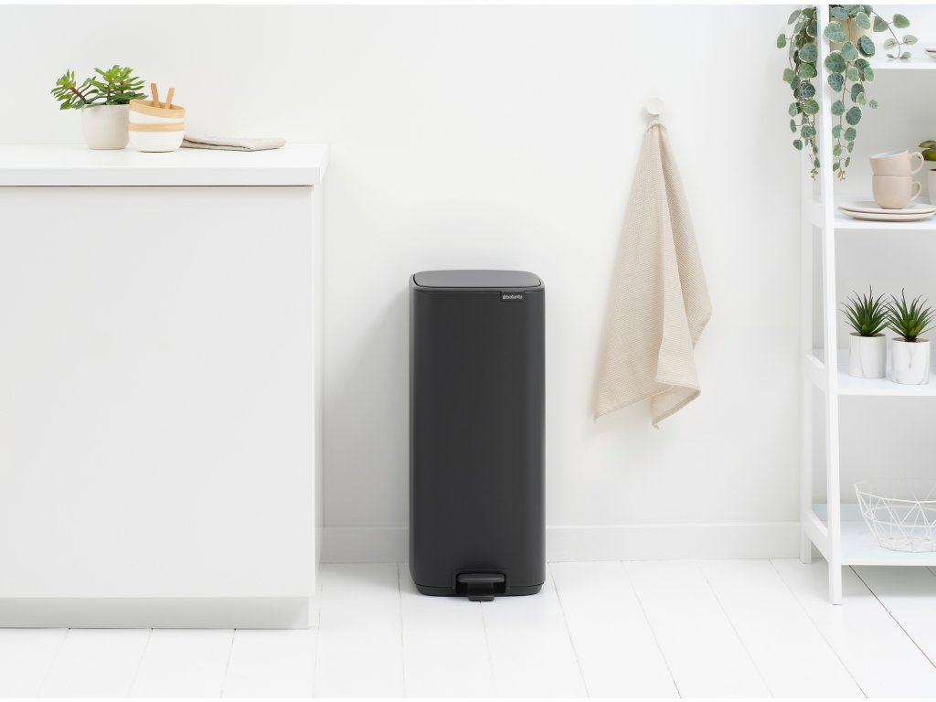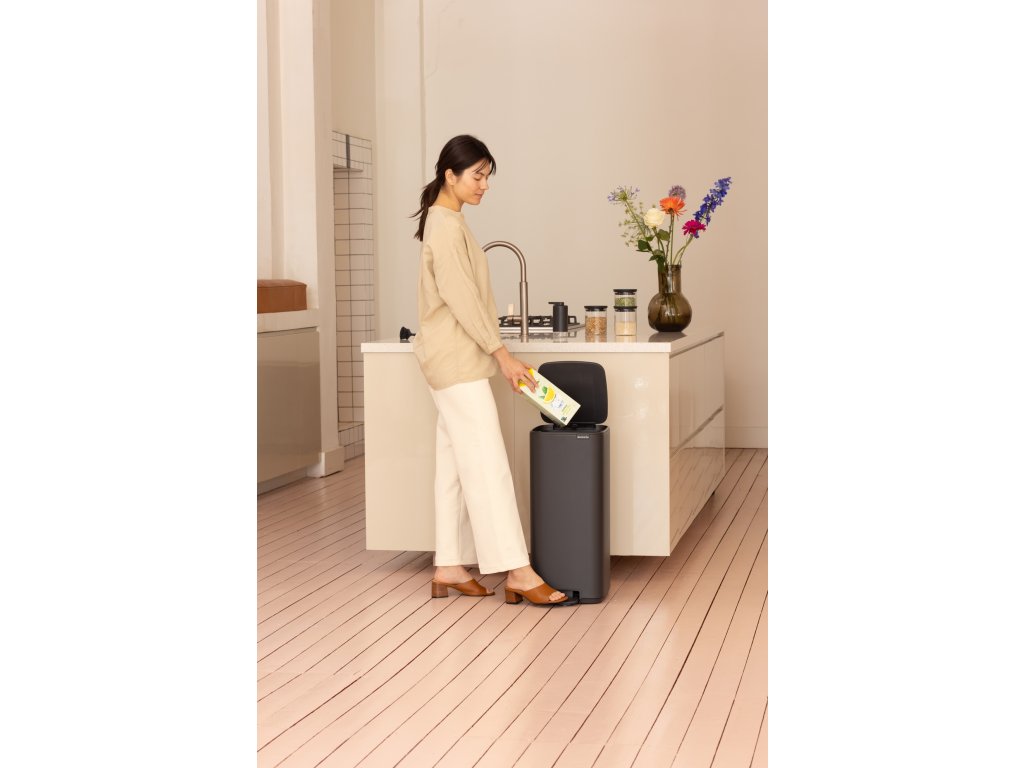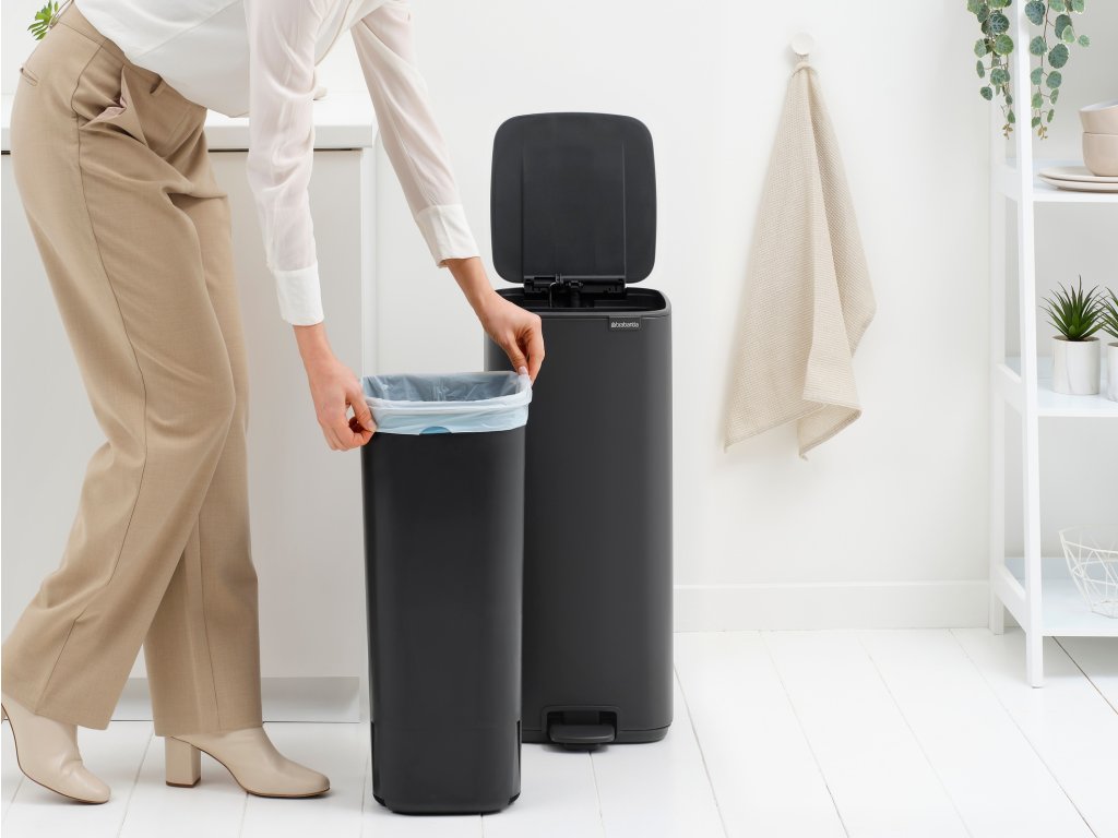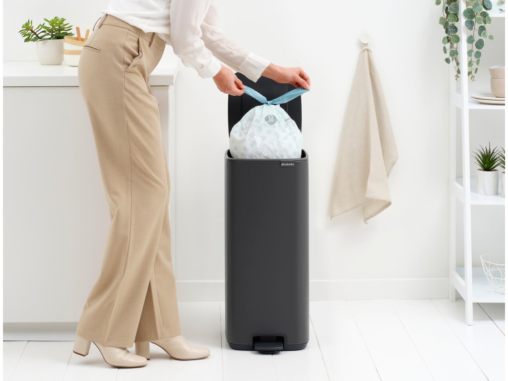 Chcete skvělý odpadkový koš s maximálním stylem? Tento štíhlý pedálový koš Brabantia Bo o objemu 30 litrů je krásný zvenku i zevnitř. Šetří místo, má hygienické ovládání pedálem a víko, které se po dokončení jemně zavírá – pro tuto štíhlou krásku není žádná objednávka příliš vysoká. Je čas na úklid? Vyjměte vnitřní kbelík a přenášejte koš za transportní rukojeť. K dispozici je dokonce i funkce ponechání otevřené polohy, která vám pomůže s úklidem. Tento vysoký a elegantní pomocník v domácnosti se také přizpůsobí zdi. Zvolte Bo!