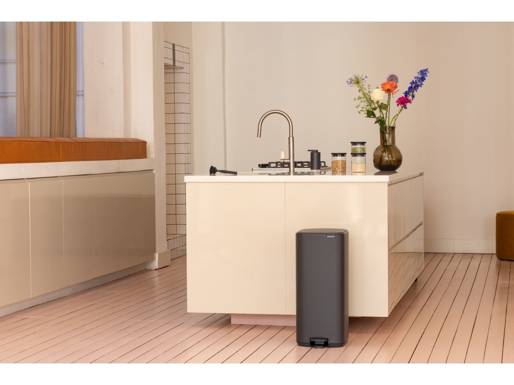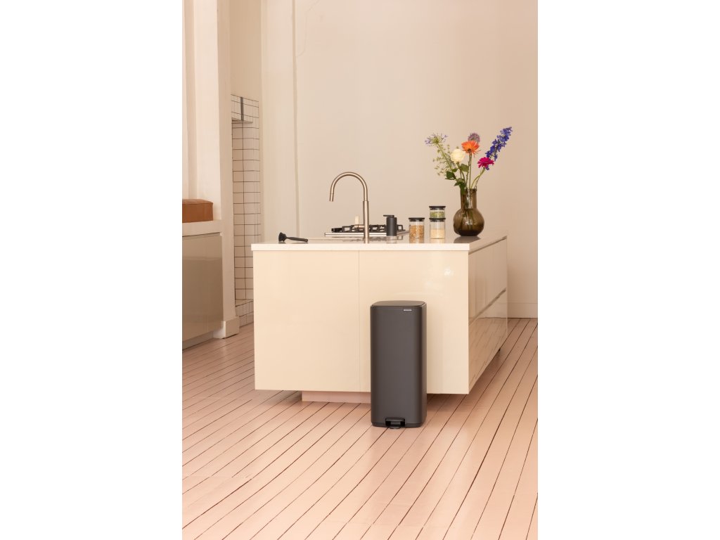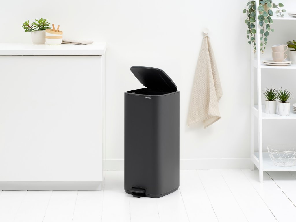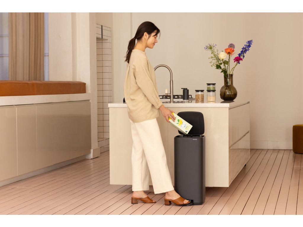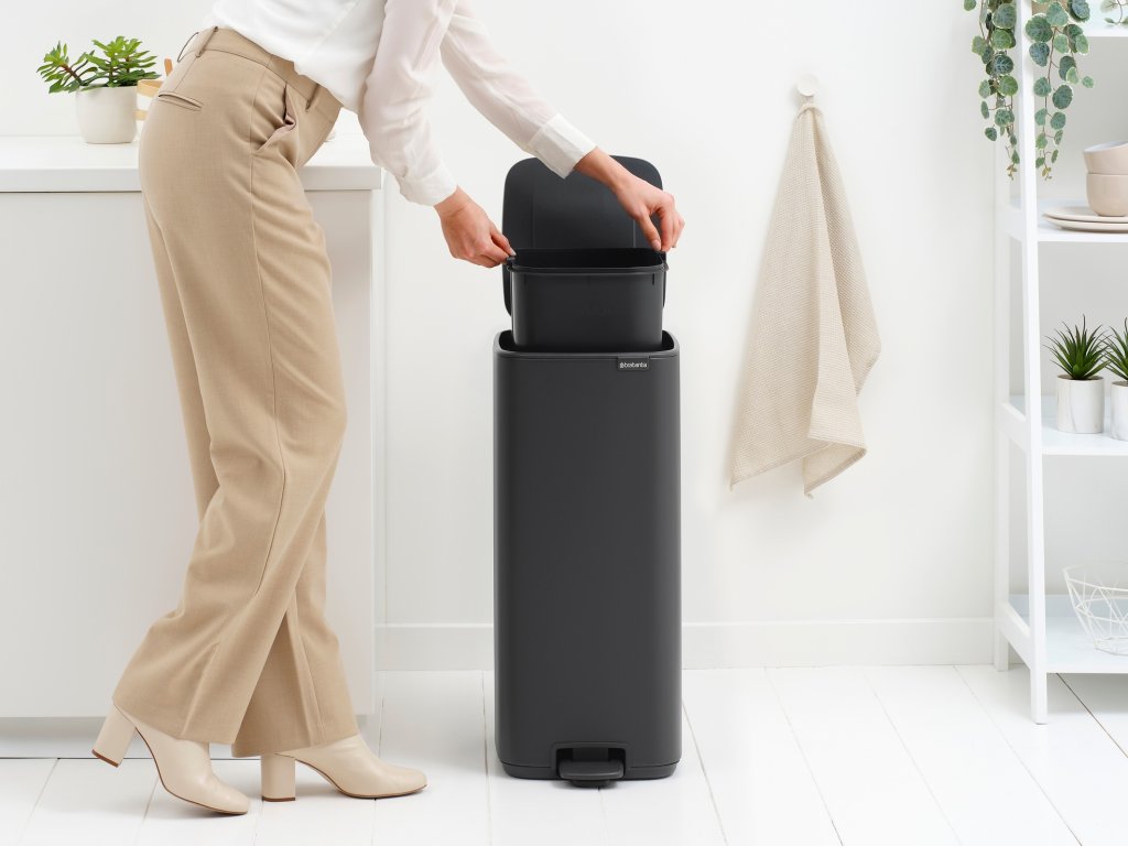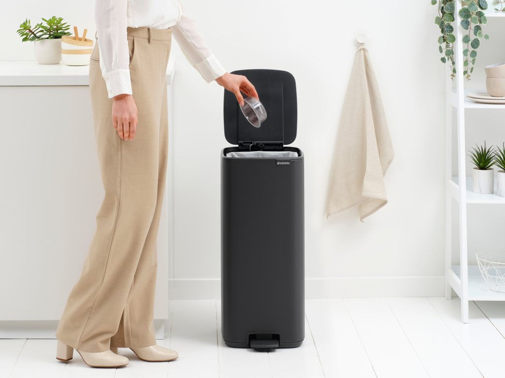 Chcete skvělý odpadkový koš s maximálním stylem? Tento štíhlý pedálový koš Brabantia Bo o objemu 30 litrů je krásný zvenku i zevnitř. Šetří místo, má hygienické ovládání pedálem a víko, které se po dokončení jemně zavírá – pro tuto štíhlou krásku není žádná objednávka příliš vysoká. Je čas na úklid? Vyjměte vnitřní kbelík a přenášejte koš za transportní rukojeť. K dispozici je dokonce i funkce ponechání otevřené polohy, která vám pomůže s úklidem. Tento vysoký a elegantní pomocník v domácnosti se také přizpůsobí zdi. Zvolte Bo!