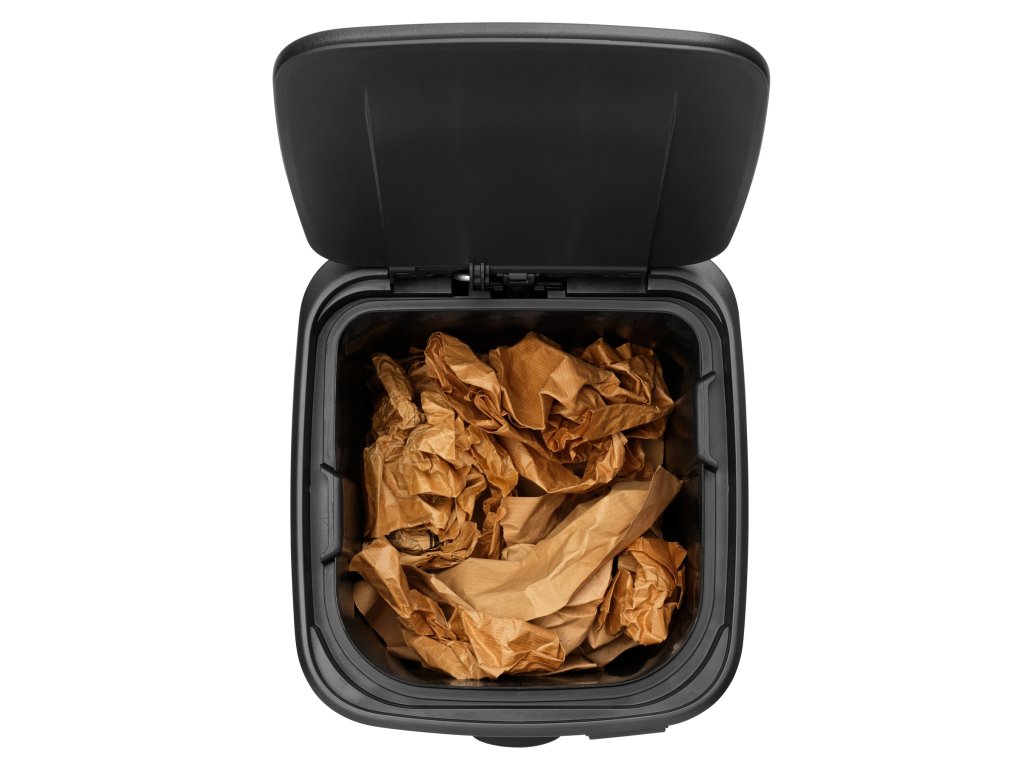 Ideální pro větší úkoly a výměnu pytlů na odpadky – poloha ponechání otevřené polohy.