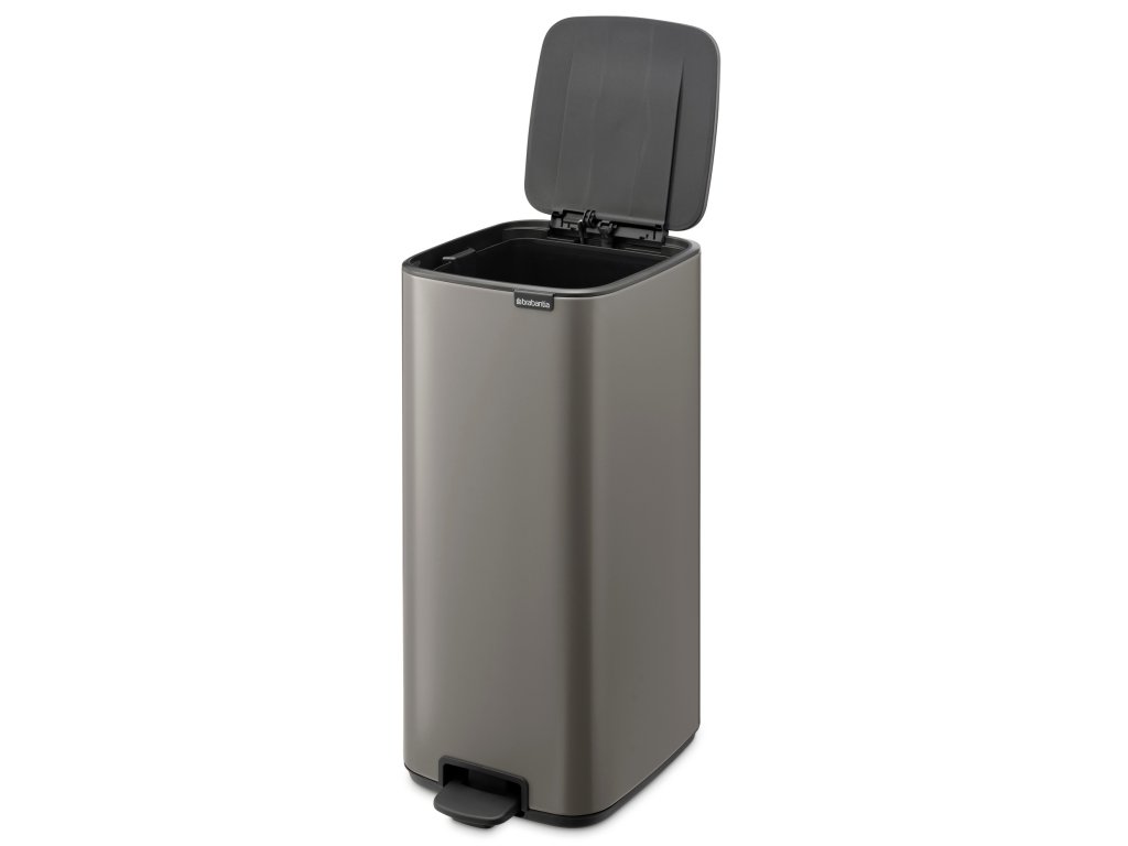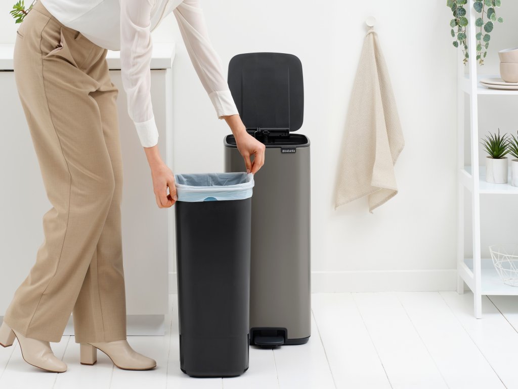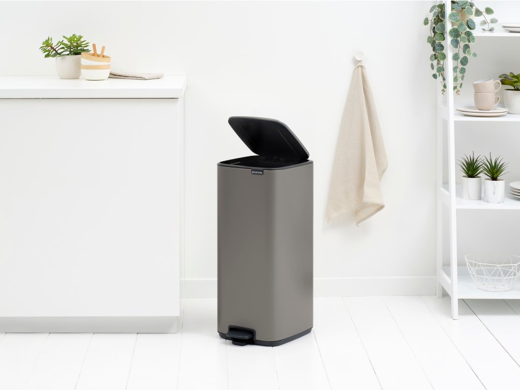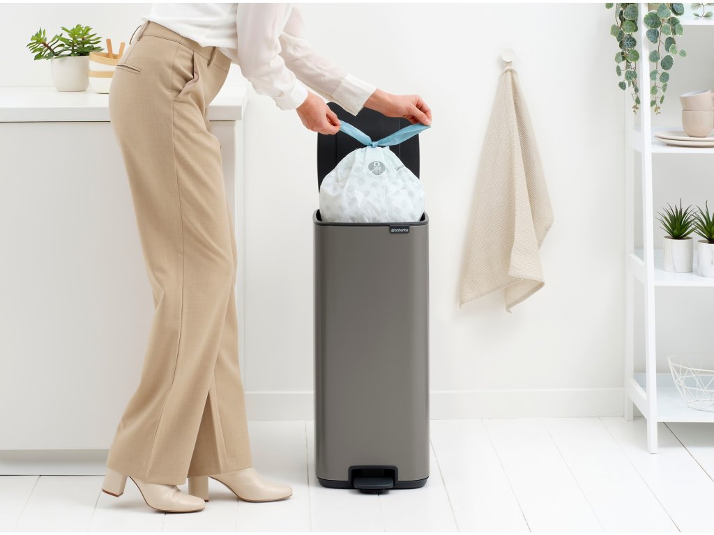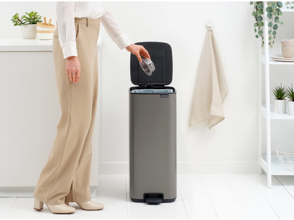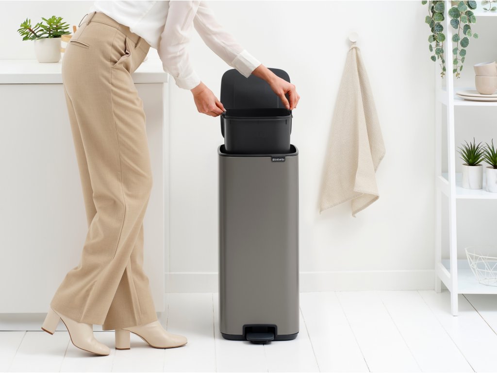 Chcete skvělý odpadkový koš s maximálním stylem? Tento štíhlý pedálový koš Brabantia Bo o objemu 30 litrů je krásný zvenku i zevnitř. Šetří místo, má hygienické ovládání pedálem a víko, které se po dokončení jemně zavírá – pro tuto štíhlou krásku není žádná objednávka příliš vysoká. Je čas na úklid? Vyjměte vnitřní kbelík a přenášejte koš za transportní rukojeť. K dispozici je dokonce i funkce ponechání otevřené polohy, která vám pomůže s úklidem. Tento vysoký a elegantní pomocník v domácnosti se také přizpůsobí zdi. Zvolte Bo!