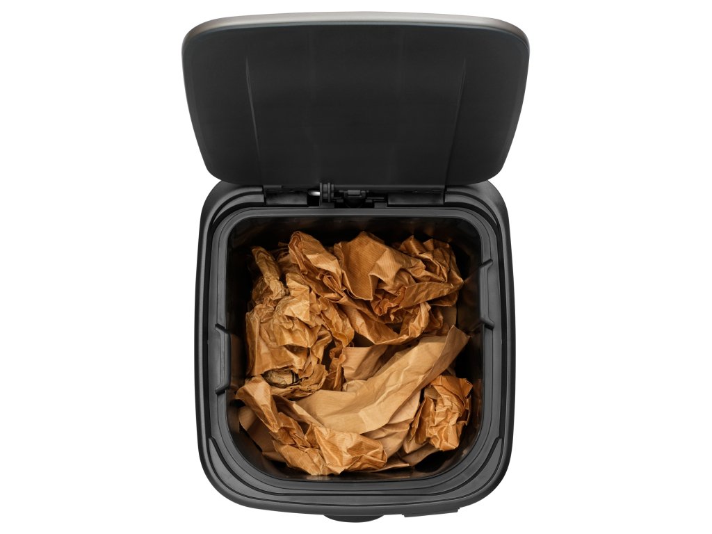 Ideální pro větší úkoly a výměnu pytlů na odpadky – poloha ponechání otevřené polohy.
