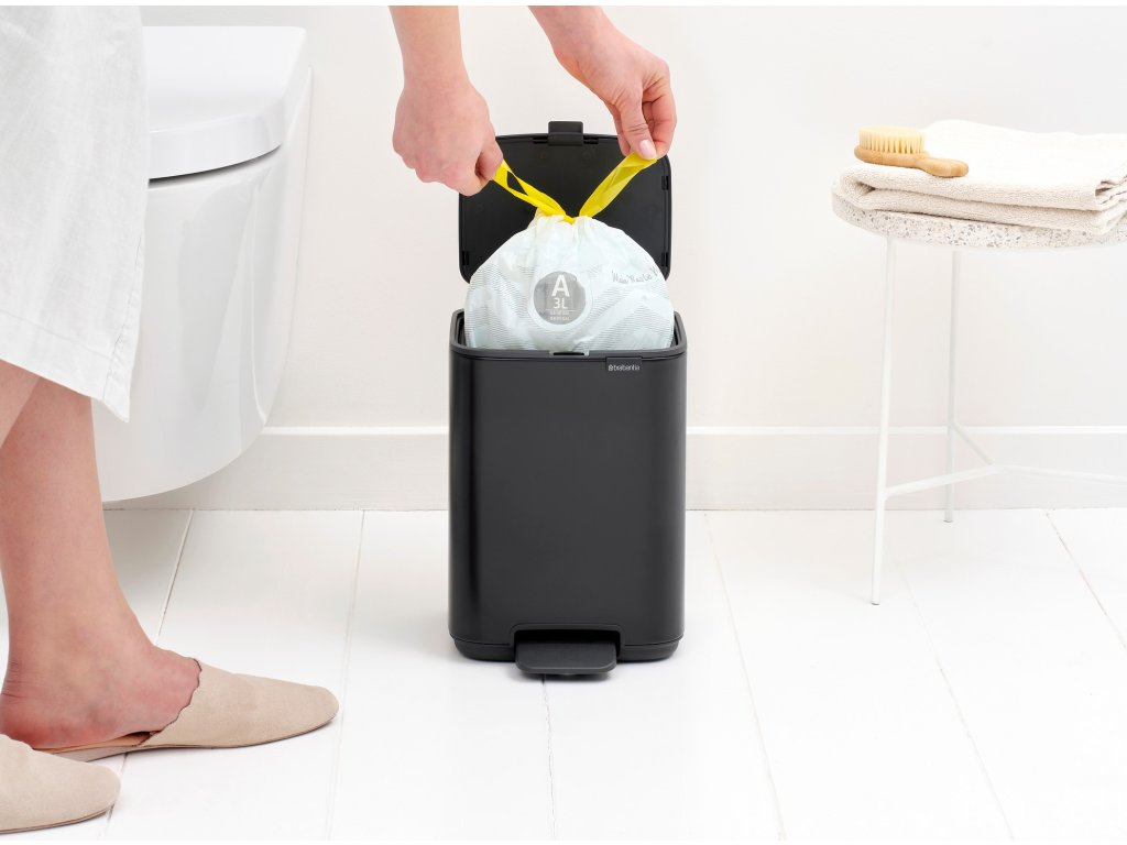 Potřebujete dotek kvalitního designu ve vaší nejmenší místnosti? Koš Brabantia Bo Pedal Bin o objemu 4 litry je přesně pro vás!