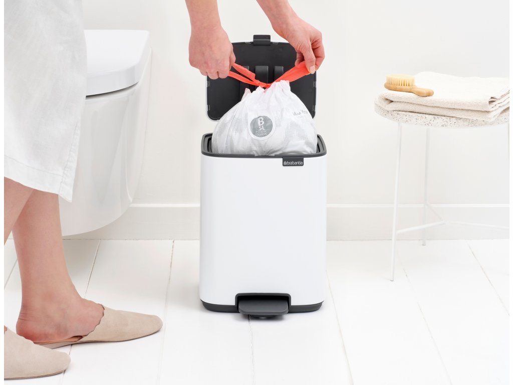 Hledáte koš, který se perfektně vejde do každé místnosti? Pak je pro vás koš Brabantia Bo Pedal Bin o objemu 7 litrů ten pravý! Díky svému prostorově úspornému designu jej můžete snadno umístit do rohu nebo ke zdi. Díky pevné a robustní konstrukci s protiskluzovou základnou a protiskluzovým blokem je tento koš vyroben pro dlouhou životnost. Víko můžete hygienicky otevřít stisknutím pedálu nebo ručně pomocí okraje víka. Funkce ponechání otevřené polohy umožňuje snadnou výměnu vložek. Koš, který vyhraje!