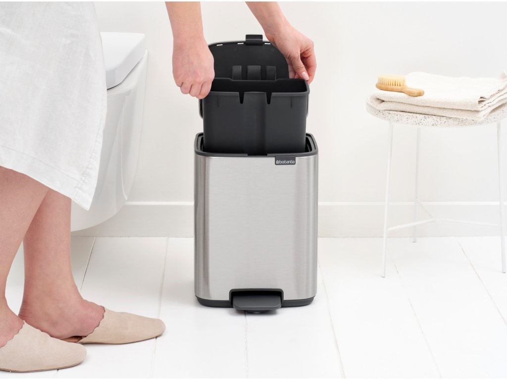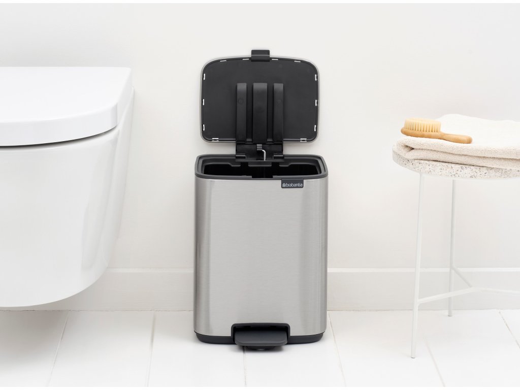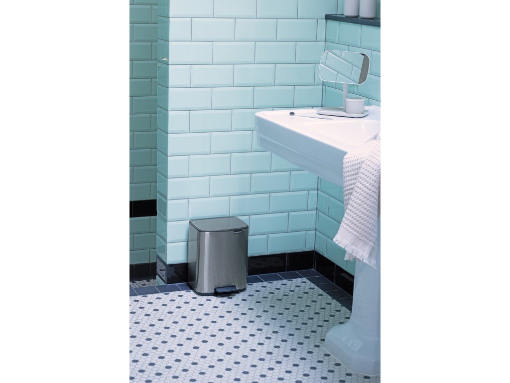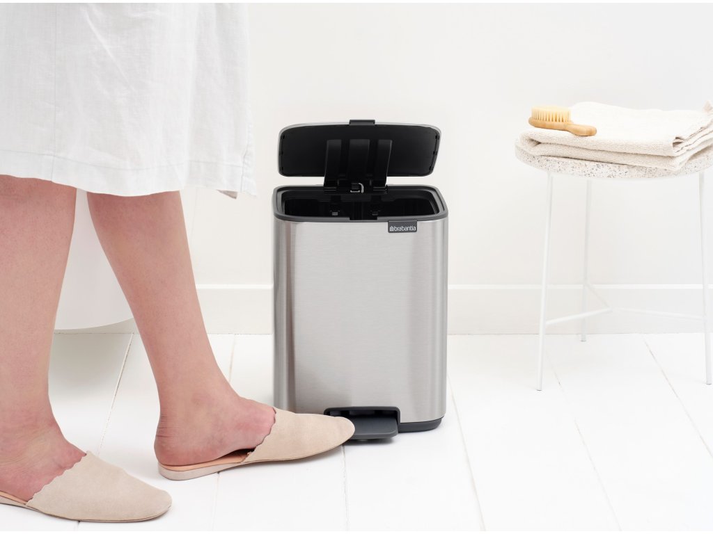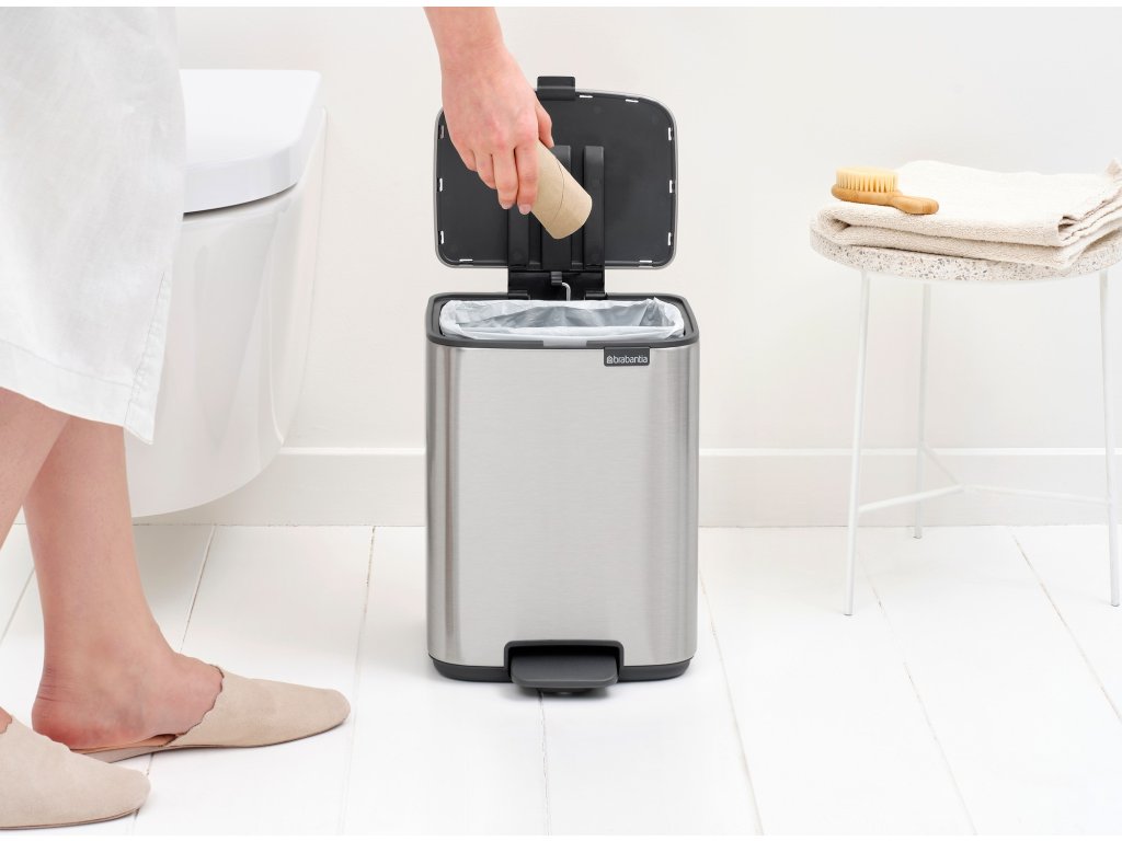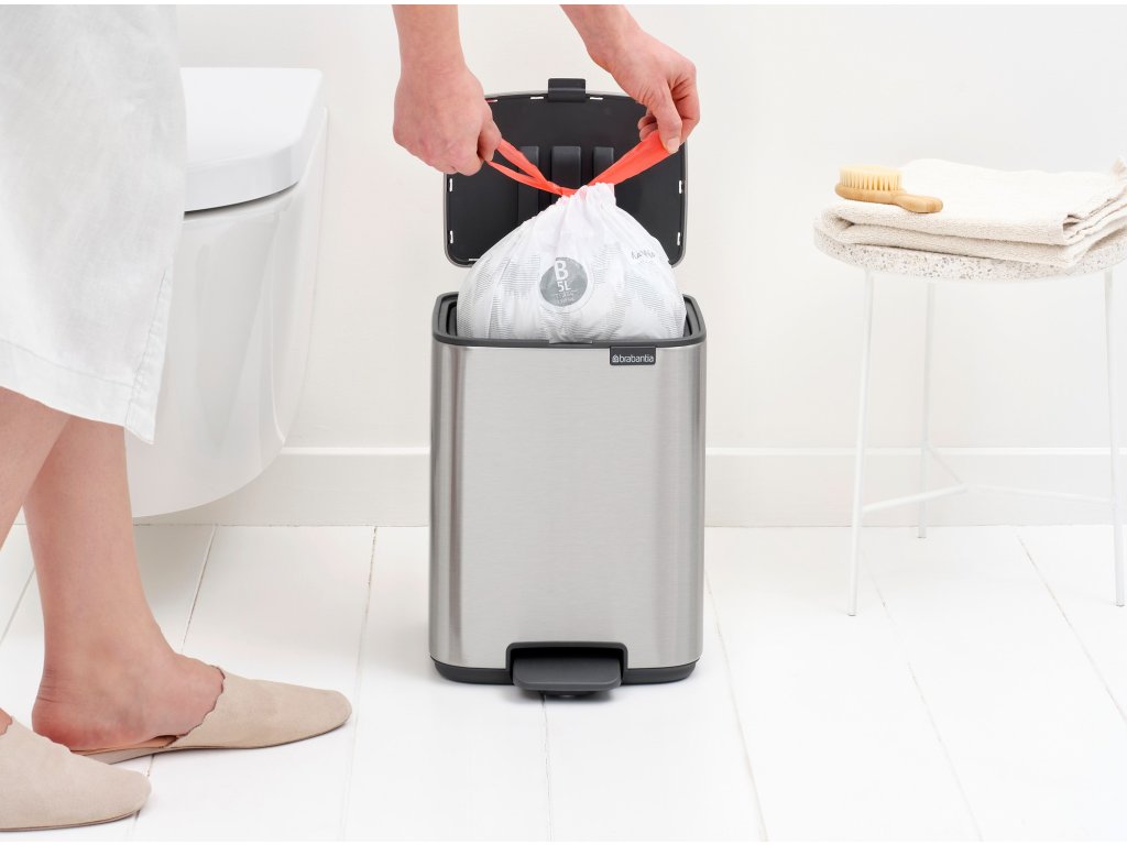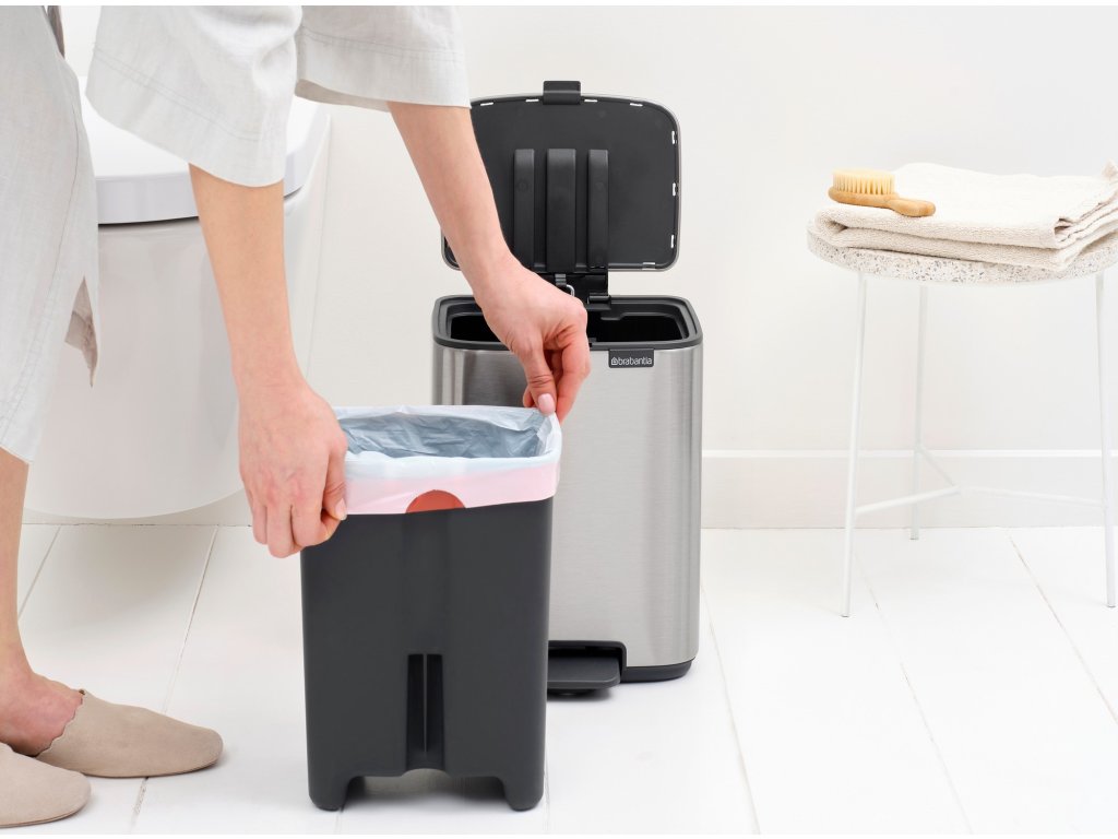 Hledáte koš, který se perfektně vejde do každé místnosti? Pak je pro vás koš Brabantia Bo Pedal Bin o objemu 7 litrů ten pravý! Díky svému prostorově úspornému designu jej můžete snadno umístit do rohu nebo ke zdi. Díky pevné a robustní konstrukci s protiskluzovou základnou a protiskluzovým blokem je tento koš vyroben pro dlouhou životnost. Víko můžete hygienicky otevřít stisknutím pedálu nebo ručně pomocí okraje víka. Funkce ponechání otevřené polohy umožňuje snadnou výměnu sáčků.
