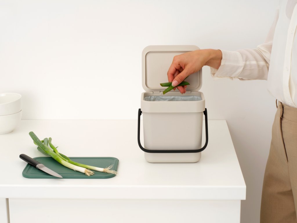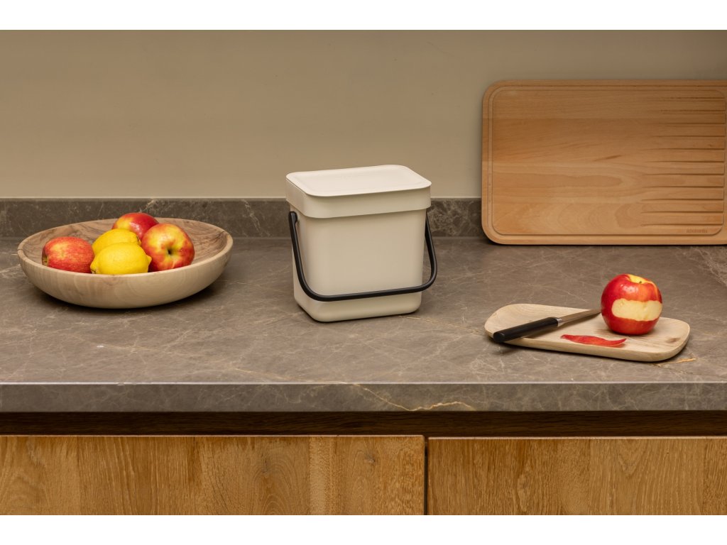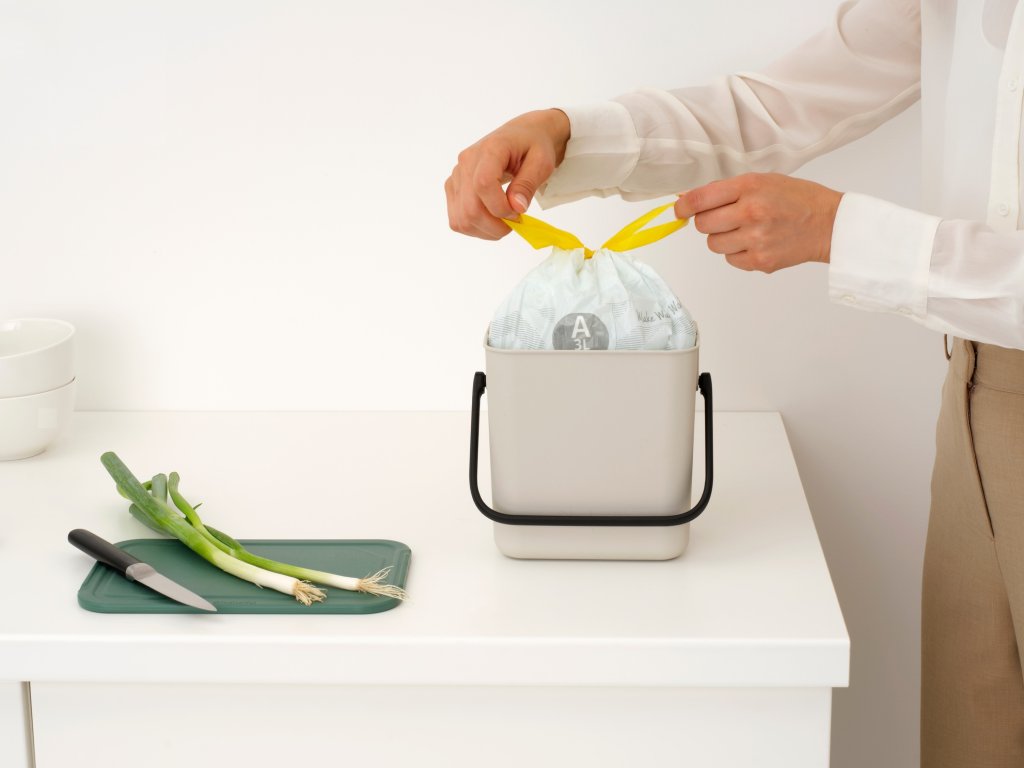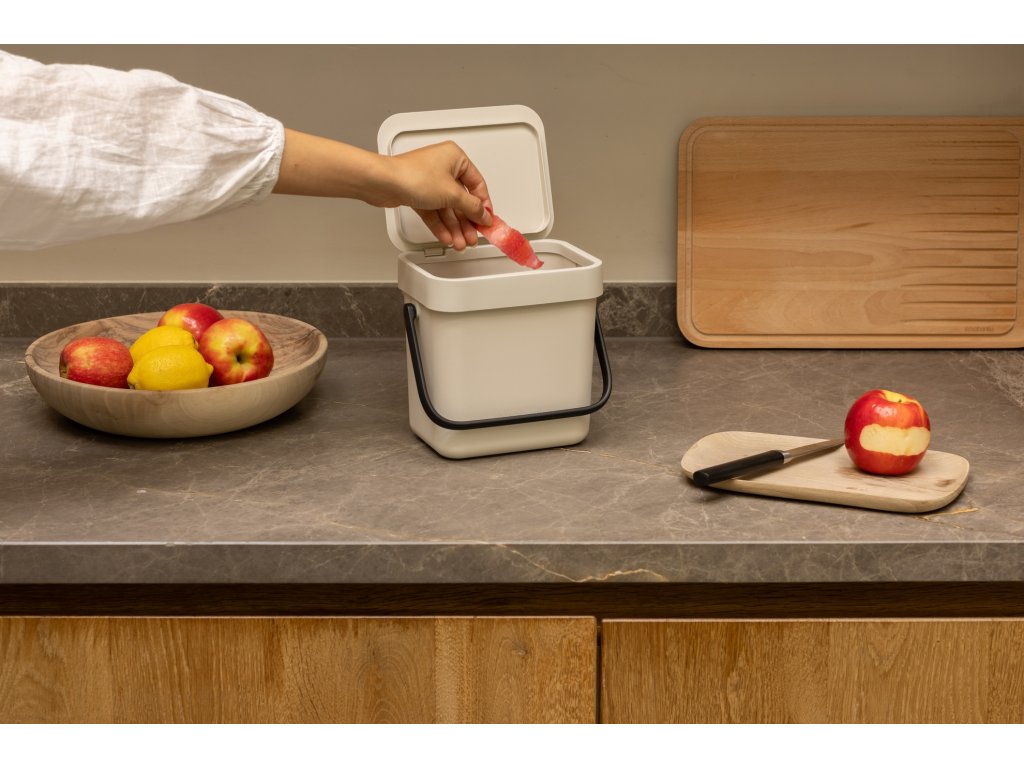 Tento roztomilý třílitrový koš Brabantia Sort & Go s víkem. Je skvělý na slupky, zbytky jídla, zbytky... vlastně na veškerý organický kuchyňský odpad. Stačí ho vystavit na pracovní desku nebo schovat do zásuvky. Plný? Uchopte ho za praktickou rukojeť a vysypte ho na kompost, nebo do nádoby na bioodpad. Skvělý koš ve velikosti XXS!