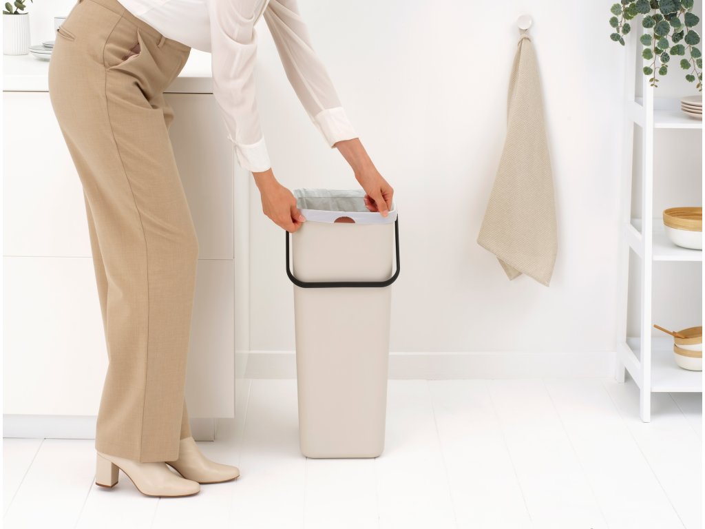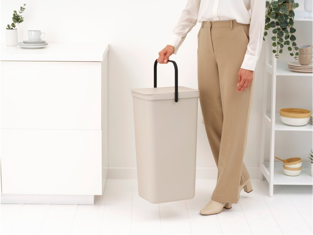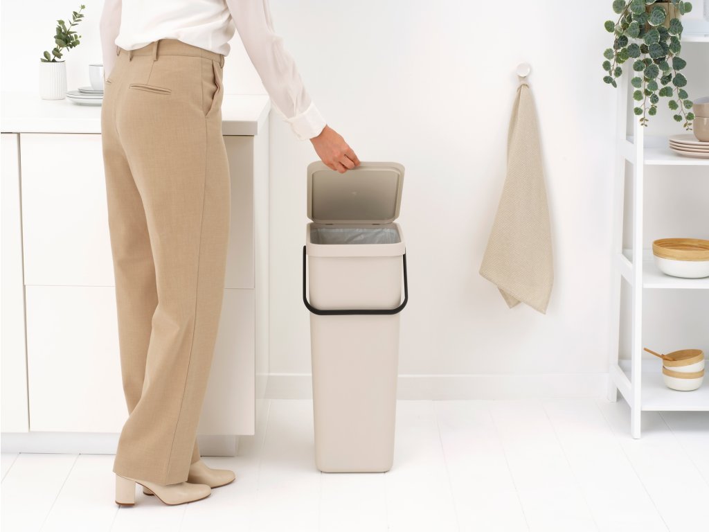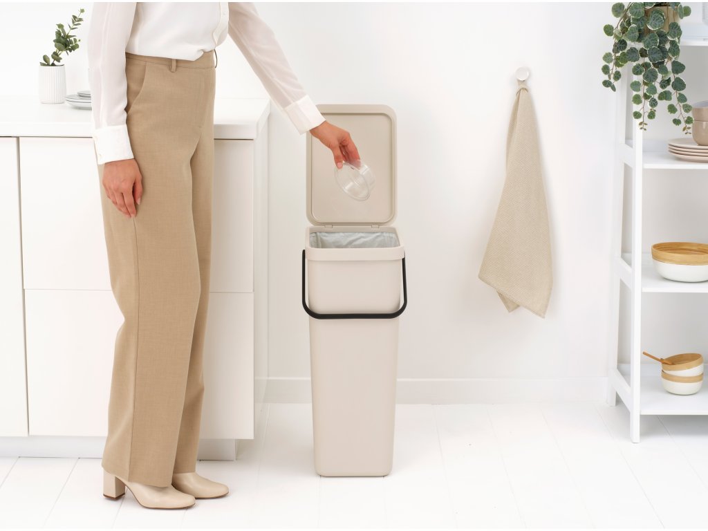 Prázdné obaly, lahve, plechovky - a vše, co chcete roztřídit - do tohoto praktického 40litrového koše Brabantia Sort & Go.