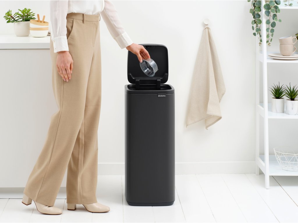 Hledáte řešení odpadu, které odpovídá vašemu stylu? Tento koš Brabantia Bo Touch Bin kombinuje krásný design s objemem 30 litrů. Je navržen tak, aby vydržel, s láskou k vašemu domovu. Díky svému štíhlému designu se tento prostorově úsporný koš perfektně hodí do rohu nebo ke zdi. Jeho unikátní měkké otevírání umožňuje snadné a lehké ovládání dotykem ruky a snadno jej přemístíte pomocí transportních úchytů. Do toho, Bo!