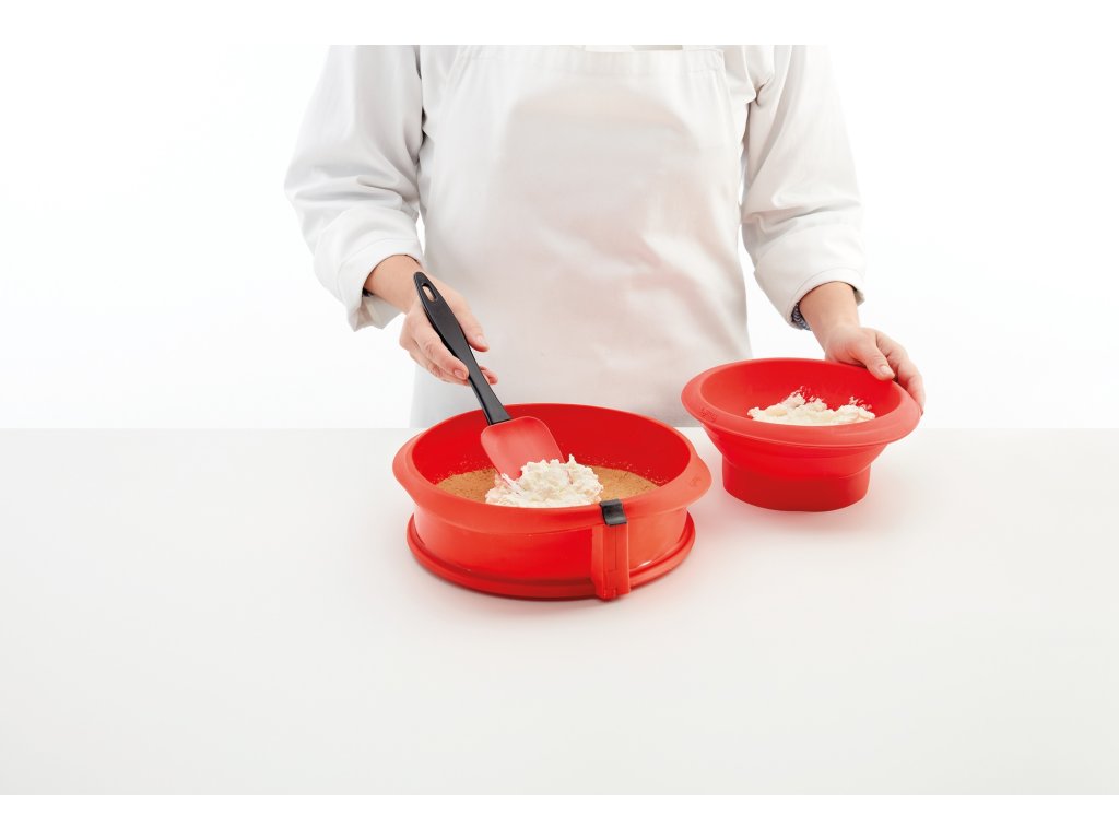 Silikonová forma o průměru 23 cm s keramickým dnem pro pečení a servírování.