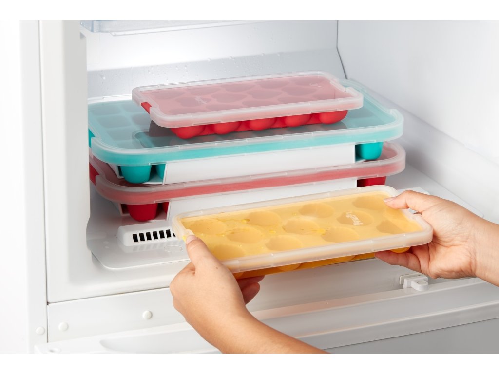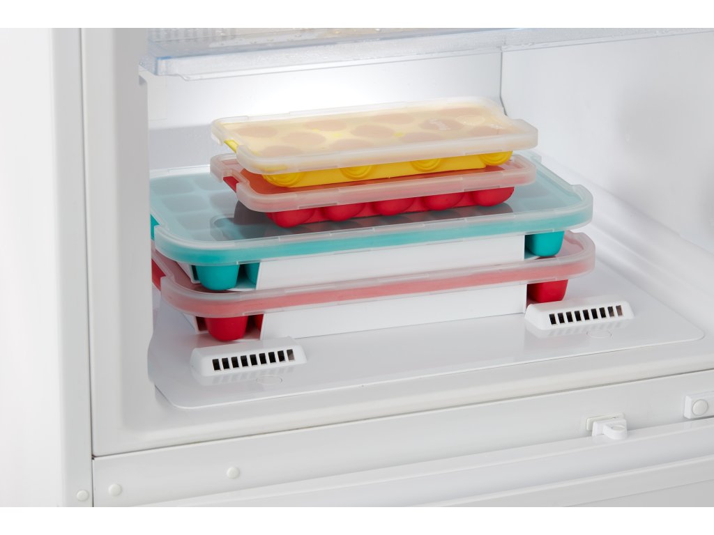 Tyto formičky na led jsou vyrobeny z gumy. Jsou flexibilní, takže je snadné a rychlé vyjmout kostky ledu. Je to bez námahy: stačí stisknout formičku na led! Součástí je víko, které zabraňuje přenosu pachů z mražených potravin na kostky ledu. Umožňuje také stohovat formičky na led a další nádoby, čímž šetří úložný prostor. Je stabilní, takže formičku na led můžete přemisťovat a umisťovat ji do zásuvek mrazničky bez úniku vody.