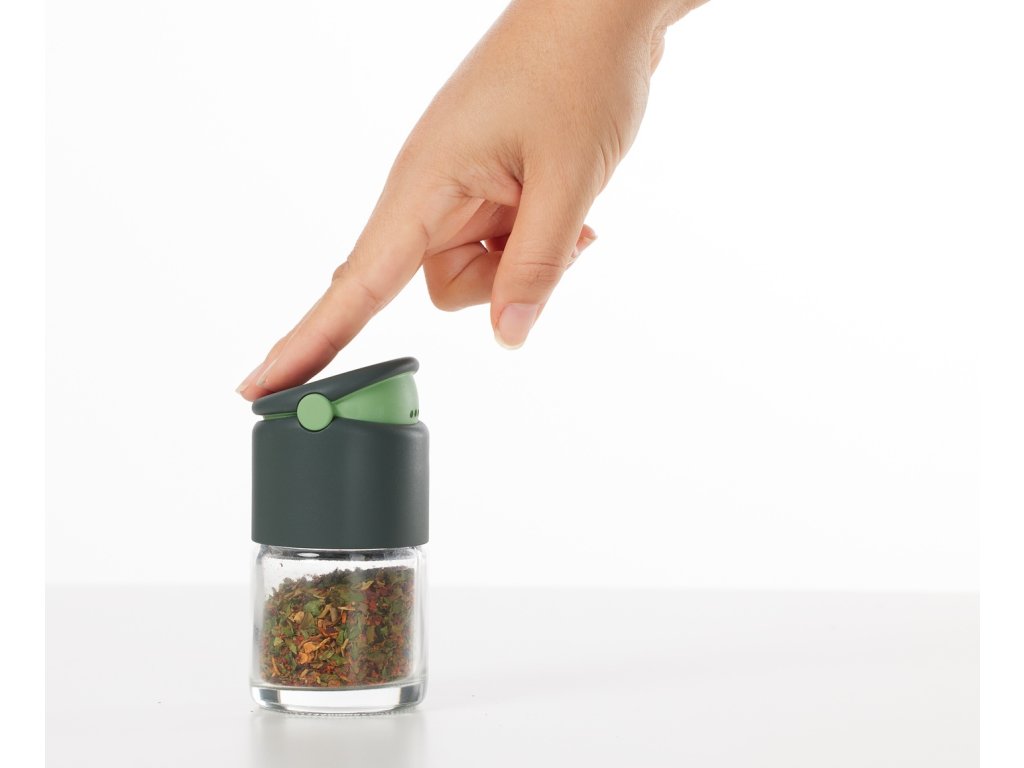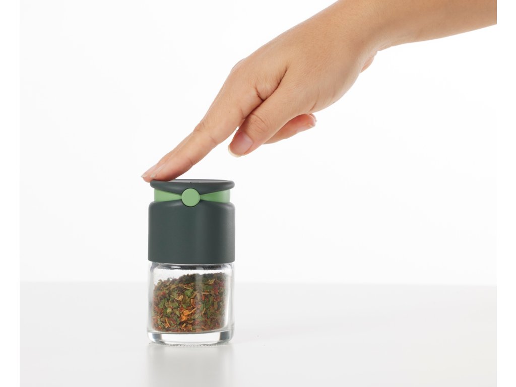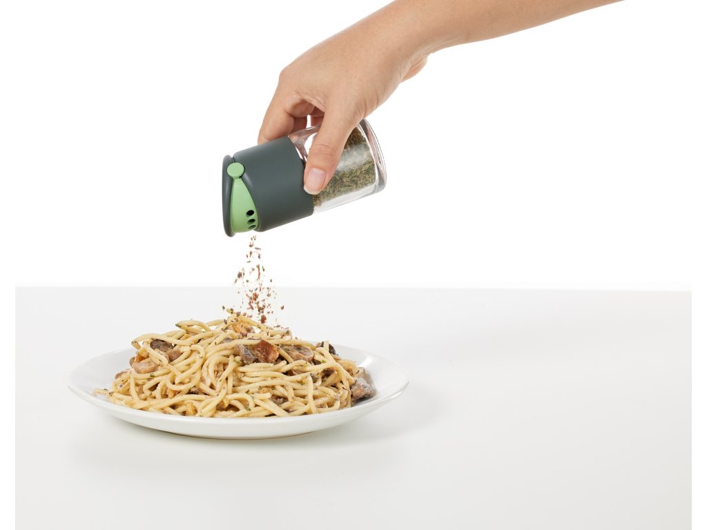 Tato kořenka má dvojitý otvor pro servírování všech druhů koření. Funkce posypávání je ideální pro práškové koření, jako je kurkuma, kari a skořice. Funkce sypání je ideální pro listy a semena, jako je oregano, petržel a kmín, nebo pro větší porci.