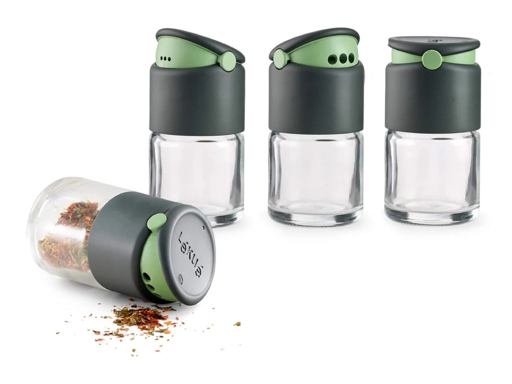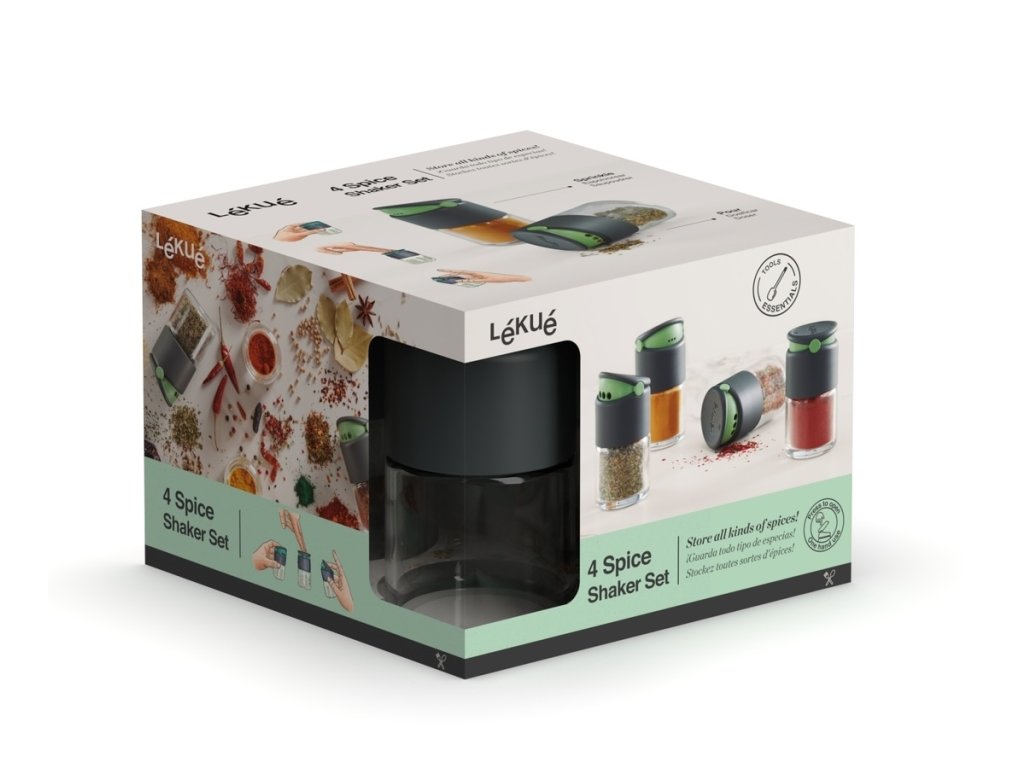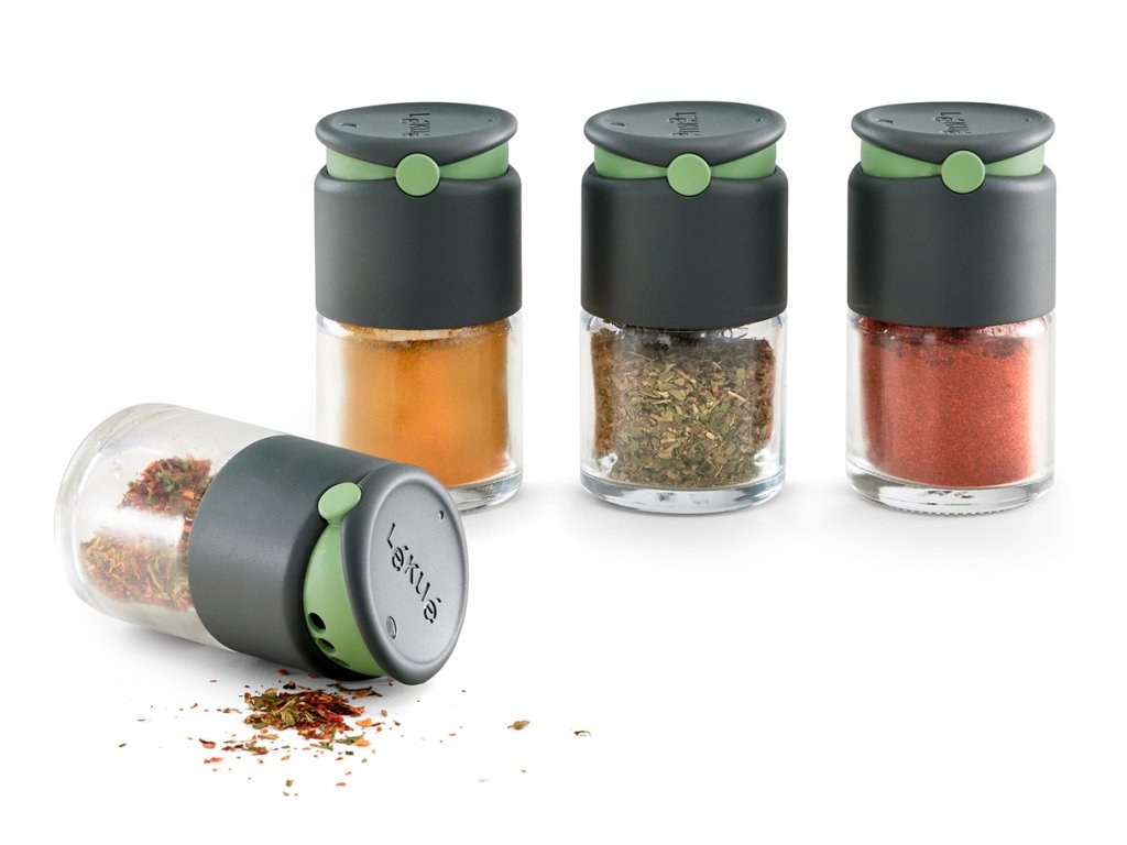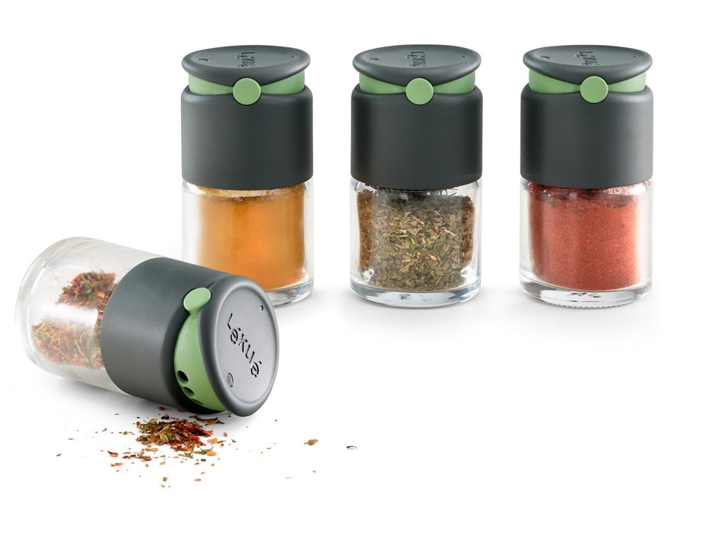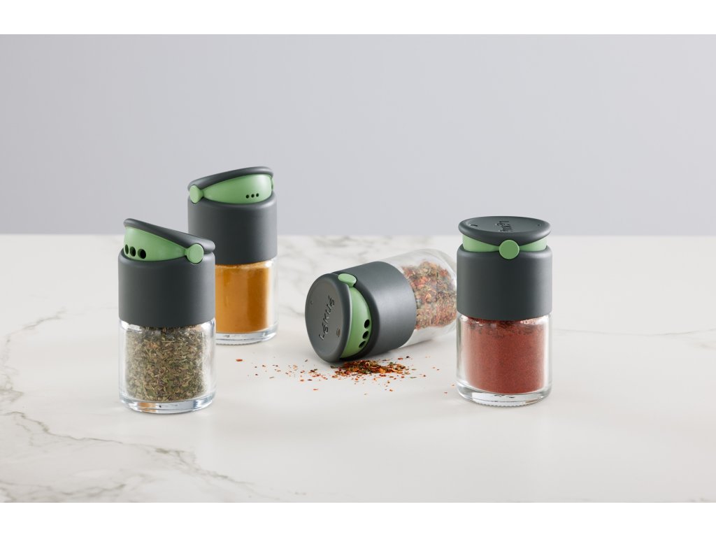 Sada 4 kořenek s dvojitým otvorem pro sypání a posypávání všech druhů koření. Praktické vestavěné víko se otevírá jednoduchým kliknutím!