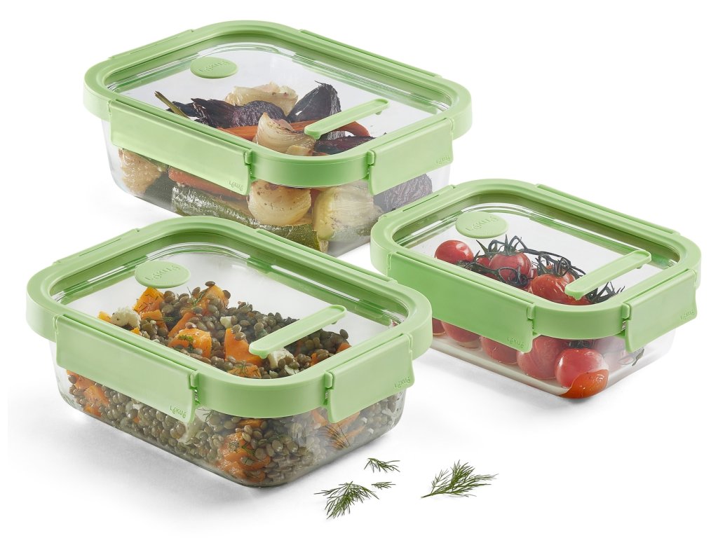 Tyto vzduchotěsné nádoby, vyrobené z vysoce kvalitního borosilikátového skla, nabízejí výjimečnou odolnost a udržují vaše potraviny v bezpečí a čerstvé. Jejich tepelně odolné skleněné kryty nejen udržují potraviny čerstvé, ale také se snadno čistí a zabraňují skvrnám a zápachu. Vestavěný ventil umožňuje ohřívat je v mikrovlnné troubě bez nutnosti sundávání víka. Obsahují datumovku, abyste mohli přesně sledovat své potraviny. Stohovatelný design, optimálně využívá prostor v lednici a spíži. Všestranné pro skladování a přepravu potravin. Praktické, snadno použitelné a odolné! Uskladněte své potraviny a vychutnejte si je jako nikdy předtím! Skleněné nádoby o objemu 1520 ml, 1050 ml a 640 ml.